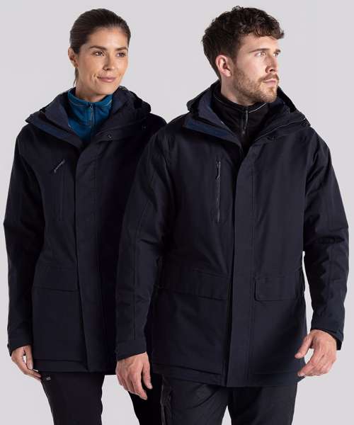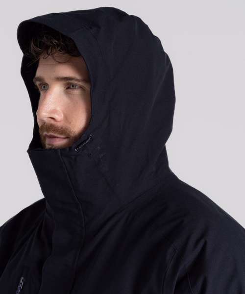 Cool wash with Craghoppers AquaDry waterproof cleaner or pure soap. Wash with similar colours. Do not use bleach or water softeners. Do not use fabric conditioners. Rinse well. Remove immediately after wash. Can be tumble dried on a low setting. Cool iron, if needed, on the outer side of the fabric. Do not dry clean. Do no wring. Close all fasteners before washing and drying. Use Craghoppers AquaDry reproofer if needed. Apply heat as per care instructions if DWR needs regenerating. Fabric may be damaged by solvents, alcohols and insecticides.