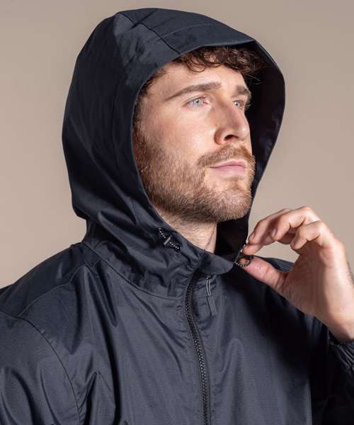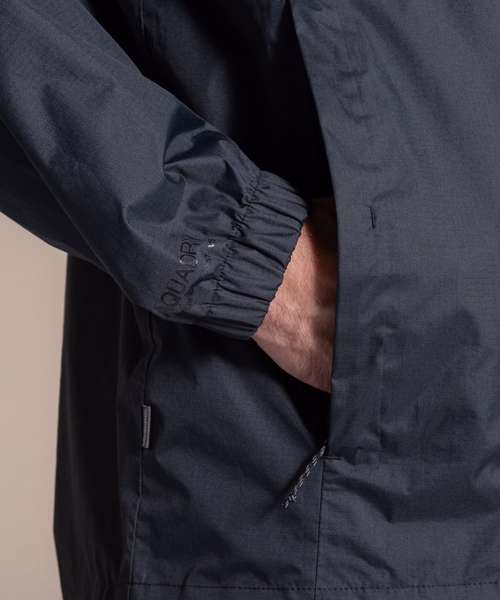 AquaDry waterproof and breathable fabric with fully taped seams. Waterproof rating (hydrostatic head): 20,000mm. Breathability rating: 30,000g/m2/24hrs. H2OShield durable water-repellent finish (at least 50% plant-based and PFAS compliant). Packs away into its own pocket. Zipped pockets. Contains recycled polyester.