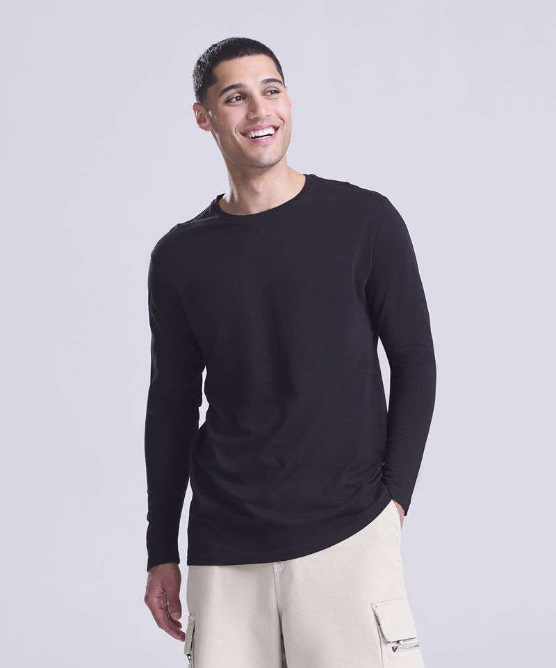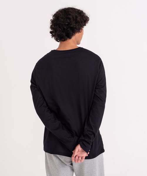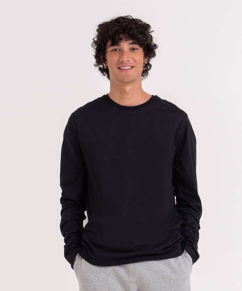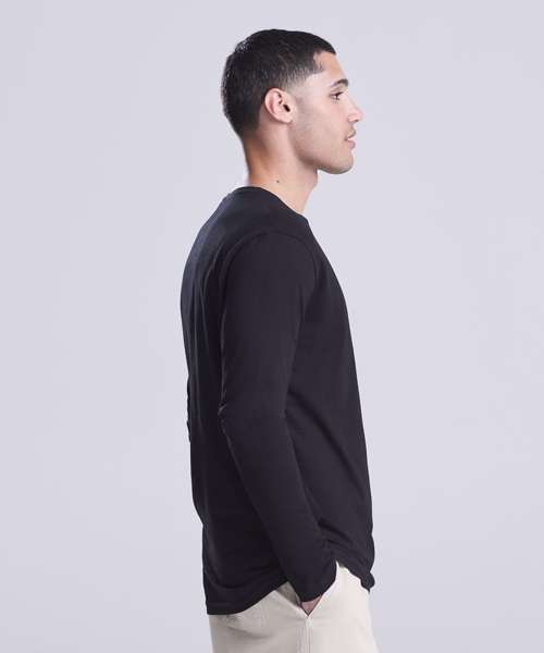 100% Organic cotton long sleeve tee. 150gsm single Jersey. Taped back neck, ribbed collar and twin-needle stitching at hem and cuffs.