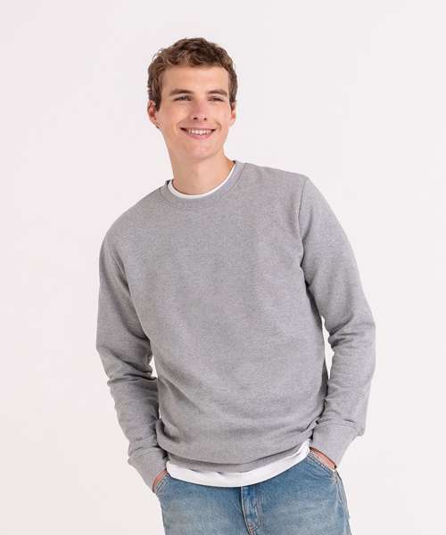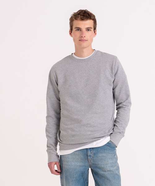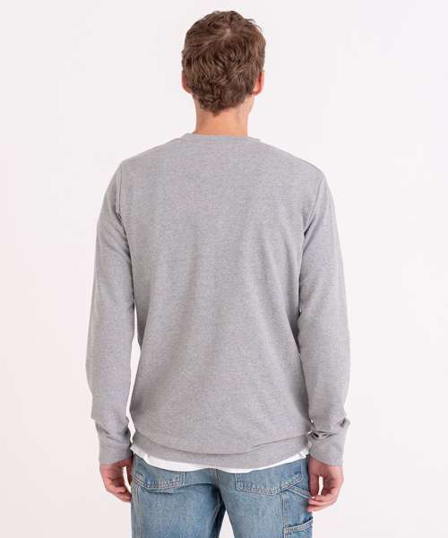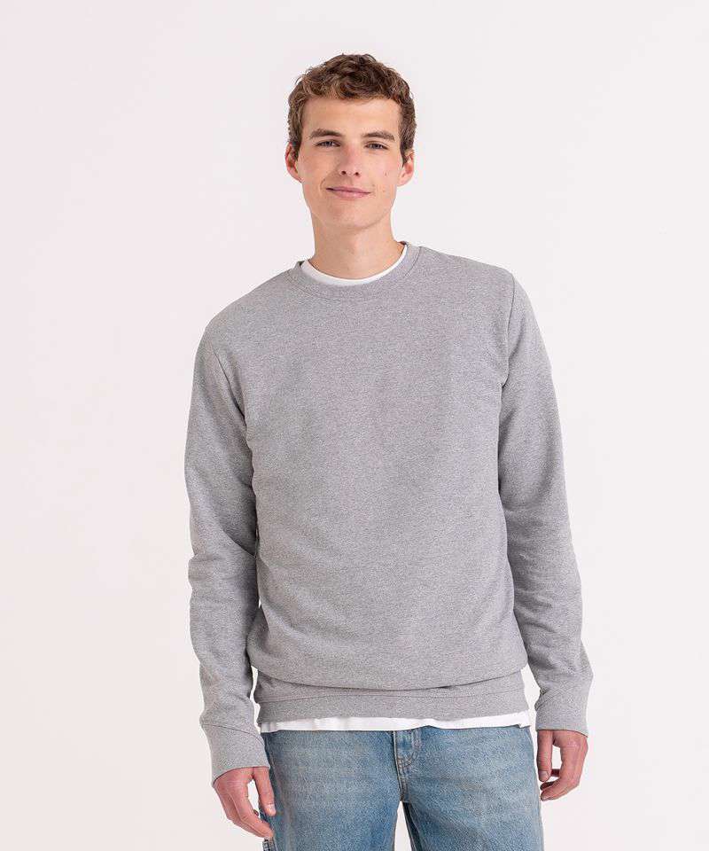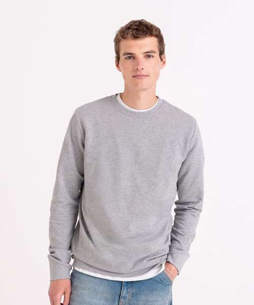 Long sleeve regenerated cotton sweatshirt with French terry construction. Set-in sleeves and crew neck with angled rib at cuffs and hem.