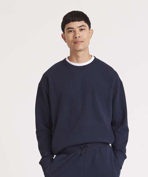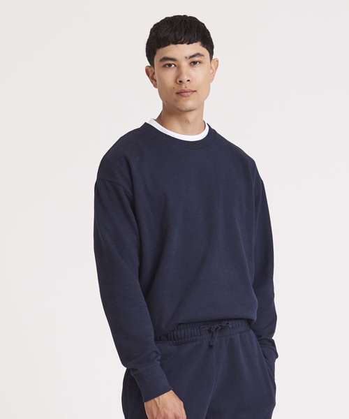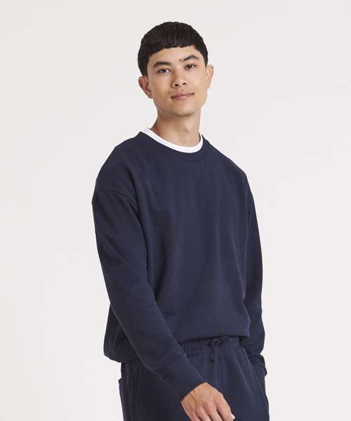 This sweatshirt uses a soft certified recycled cotton and certified recycled polyester fabric with a relaxed boxy fit. Combining style, comfort and materials with less impact, this sweatshirt is a great addition to a uniform, retail or club.