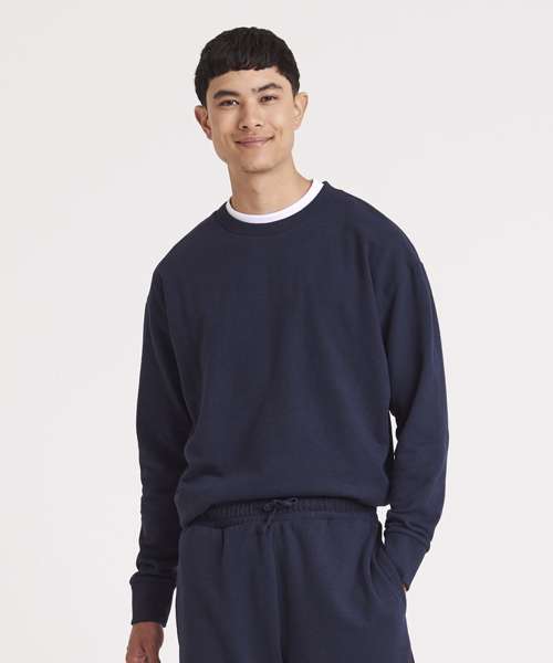 Crew neck sweatshirt. Set-in sleeves. Relaxed unisex fit. Taped neck. Peached face. Brushed inner fleece. Size tab only, for easy rebranding.