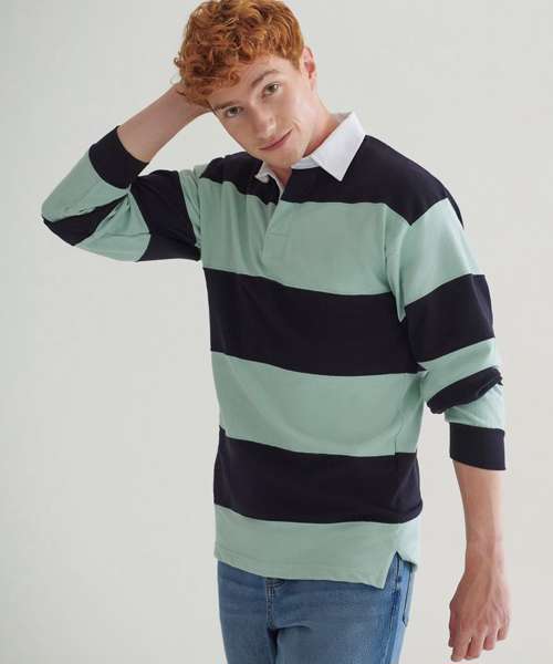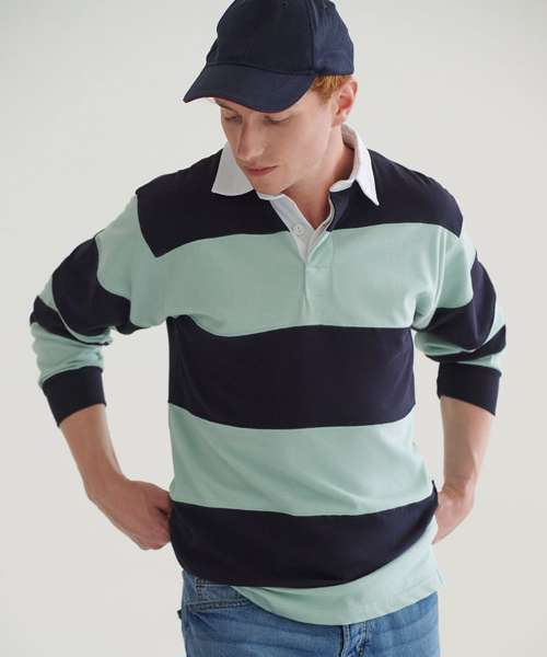 FR08M: Sewn stripe long sleeve rugby shirt