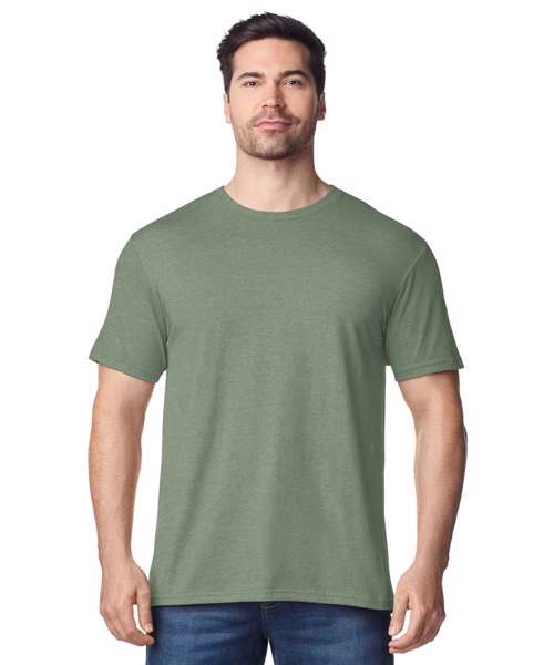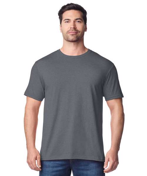 100% Combed Ringspun Cotton. RS Sport Grey: 90% Cotton, 10% Polyester. Heathers: 65% Polyester, 35% Cotton. Antiques: 90% Cotton, 10% Polyester. Blackberry: 35% Cotton, 65% Polyester. Graphite Heather: 50% Cotton, 50% Polyester