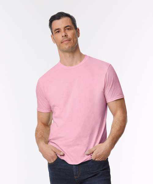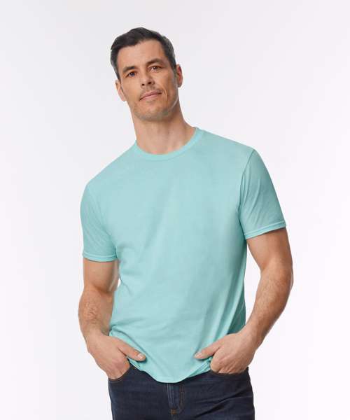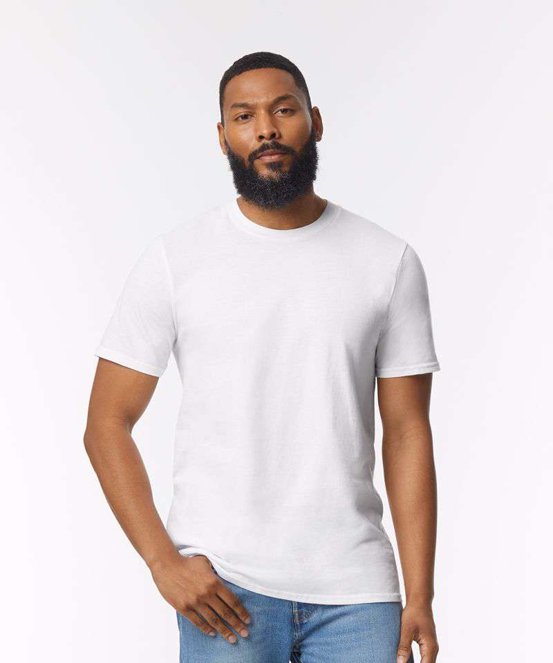 Made with our enzyme wash, soft ringspun fabric, the Softstyle™ EZ adult t-shirt features high stitch density that offers a smooth printing surface, ideal for DTG. Bio-polished fabric creates one of the smoothest print surfaces for optimal printing results. Bio-polish also creates a shirt that’s virtually pill-free, wash after wash. Soft ringspun fabric feels great against your skin. Non-topstitched, narrow width, rib collar. Taped neck and shoulders for comfort and durability. Modern classic fit, side-seamed body. High-performing black tear-away label.