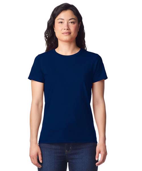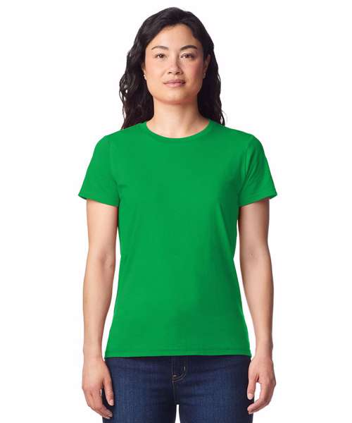 Made with our soft ringspun cotton and cotton blends, the Softstyle™ midweight women’s t-shirt features high stitch density fabric that offers a smooth printing surface, ideal for DTG. Ringspun fabric feels great against your skin. Non-topstitched, narrow width, rib collar. Taped neck and shoulders for comfort and durability. Semi-fitted, side-seamed body. High-performing black tear-away label.