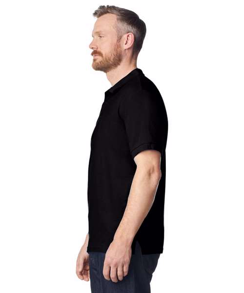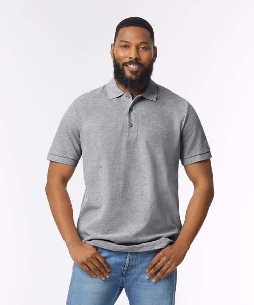 Combed Ringspun cotton double piqué knit. Side seamed with side vents. Contoured welt collar and cuffs. Tearaway label. Rolled forward topstitched shoulder. Clean finished placket with reinforced bottom box. 3 colour-matched buttons. Twin needle bottom hem.