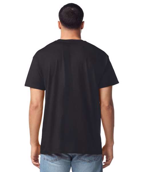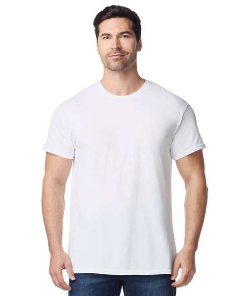 100% U.S. Cotton. 150gsm (white 145gsm). 30/1 yarn count. Modern classic fit. Side-seamed. Small-sized label on back neck. Taped neck and shoulders. Joker label in the side seam.