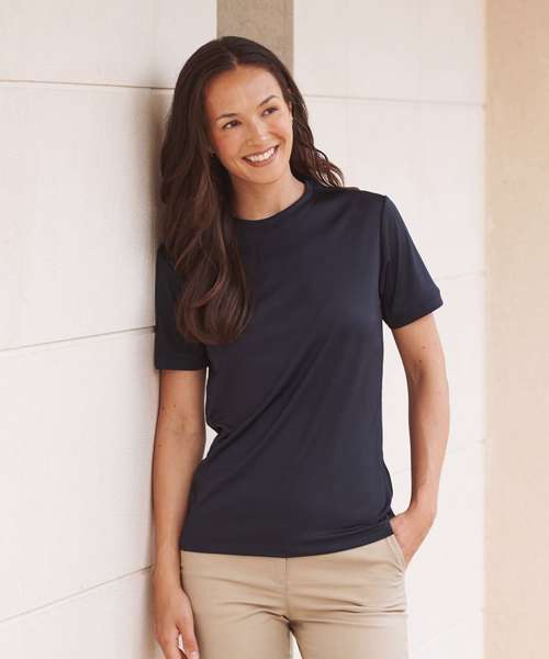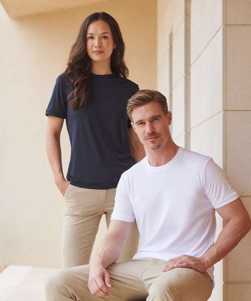 Go casual in a t-shirt that is on trend and will perform. The HiCool® permanent wicking yarn technology will keep you cool and fresh all day whilst looking on trend with its modern self-fabric neckline and cuffs.