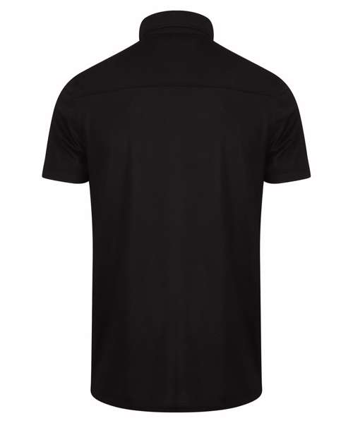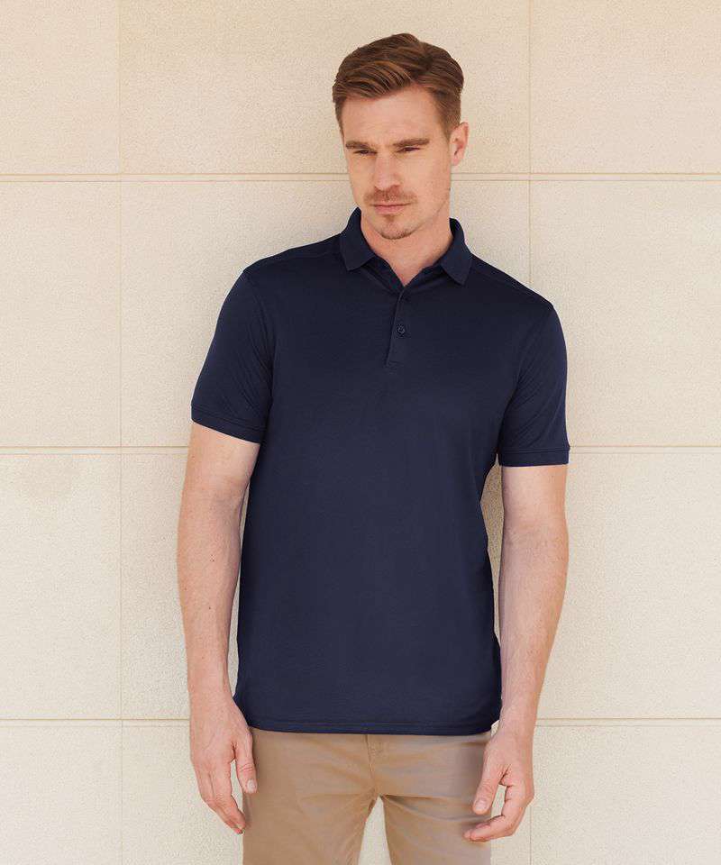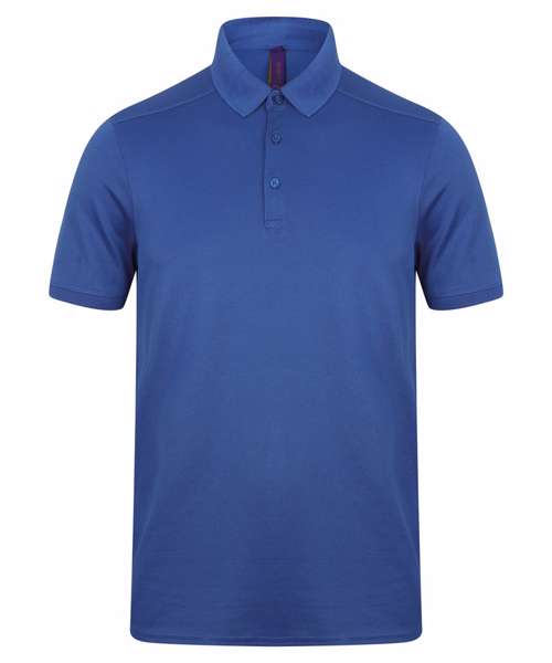 Modern fit wicking men's polo shirt with added stretch. Lightweight micro-fine piqué with a short point collar, fitted sleeve and cuffs. Front and back shoulder yolk detail. Micro-fine piqué is ideal for printing and embroidery. 3-button placket, dyed-to-match buttons. Henbury cut-out back neck brand label. Henbury cut-out back neck brand label. Wicking finish for added performance.