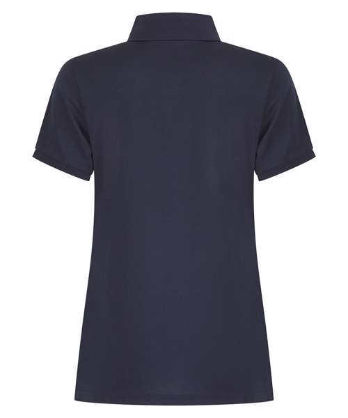 Polo shirt made from recycled polyester yarn with wicking properties. Regular fit with three-button placket. Henbury stand-up collar. 1x1 ribbed collar and cuffs. Dyed-to-match buttons. Female fit with shaped side seams. Henbury cut-out label for easy rebranding.