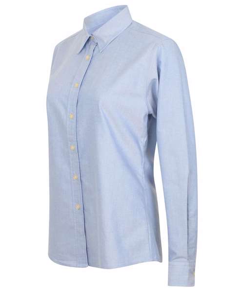 Cotton-Rich Classic Oxford with wrinkle resistant finish. Pearlised buttons on blue options, DTM on all others. Women's fit with shaped side seams and scooped hem. Adjustable cuff.