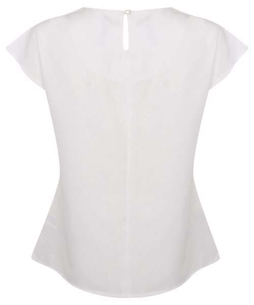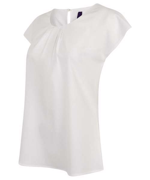 Women's pleat front blouse. Single button back neck opening. Capped sleeves. Straight hem. Fabric contains easycare, wicking, anti-UV, quick-drying properties. Matches HB590 range.