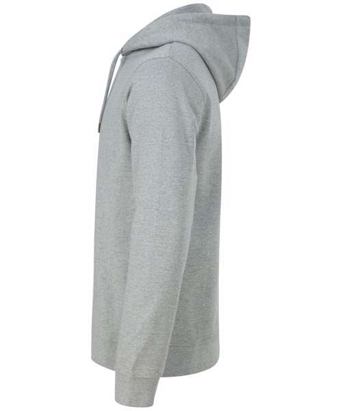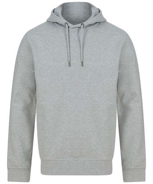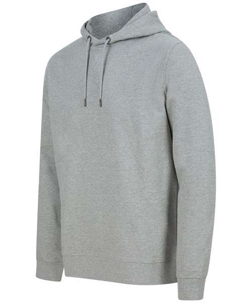 Fabric using recycled materials. Regenerated cotton mixed with recycled polyester. Brush back fleece. Set-in sleeves. 3-piece hood with drawcord and metal ends. Ribbed cuff and hemline. V insert at neckline. Regular fit. Henbury cut-out label for easy rebranding.