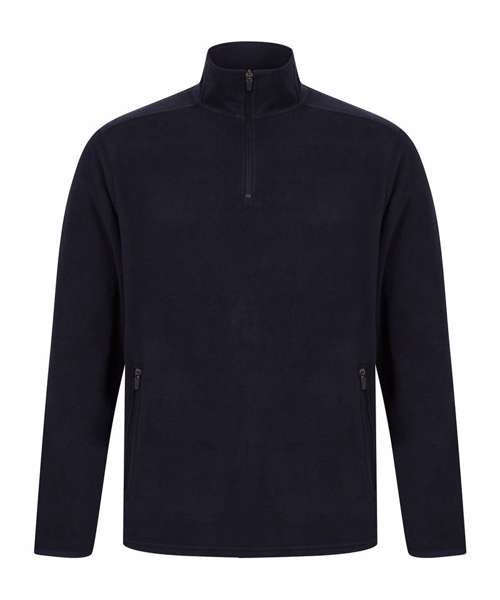 Anti-pill microfleece fabric ideal for decoration. ¼ exposed zipper at neck. Soft stand collar. 2 exposed zipper side pockets. Shoulder panel. Self-coloured binding at cuff. Twin-needle hem. Henbury cut out label.