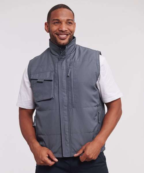 The hardwearing outer material makes this warm, wadded gilet most suitable for heavy duty work environments. Versatile pockets provide storage space for all-important items large and small (including A4 documents - unfolded!).