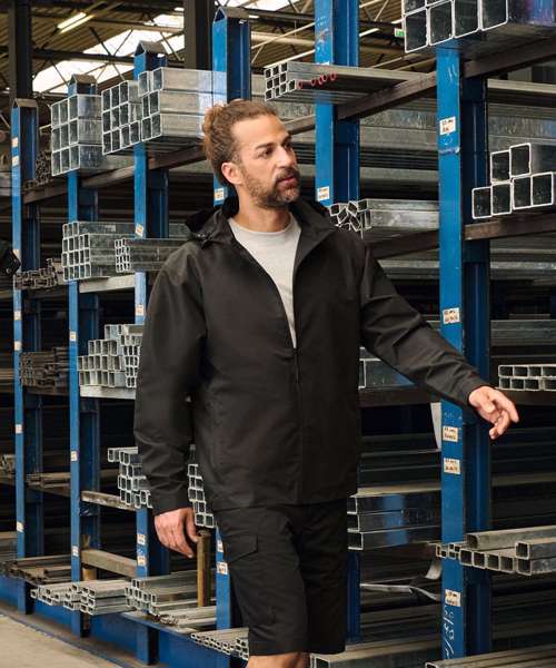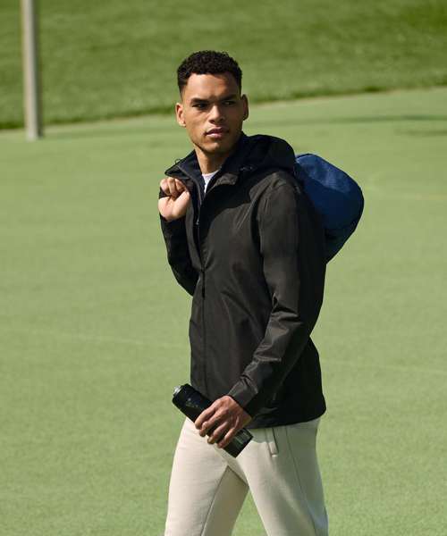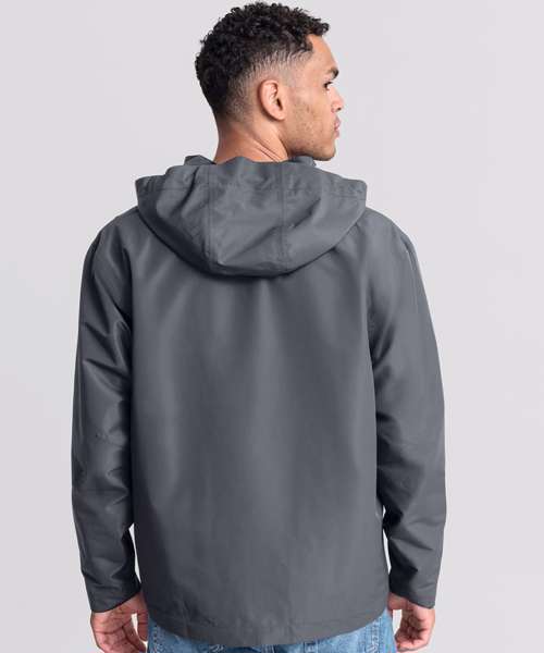Classic fit. Clean, minimalistic design. Two side pockets and one inside pocket. Adjustable three-part removable hood. Inside-out front zip with cord pull. Discreet decoration access at the hem. Breathable up to 2000g/m² per 24 hours. Waterproof material, minimum 2000mm. 100% Recycled polyester.