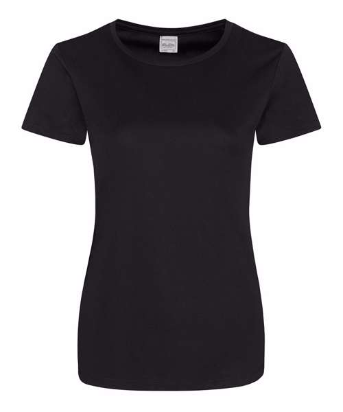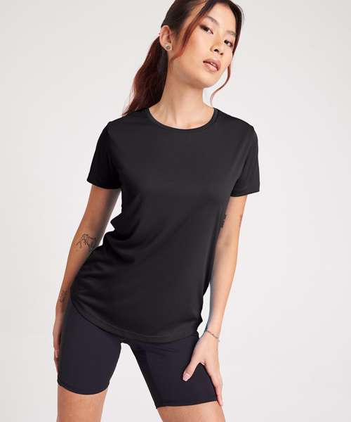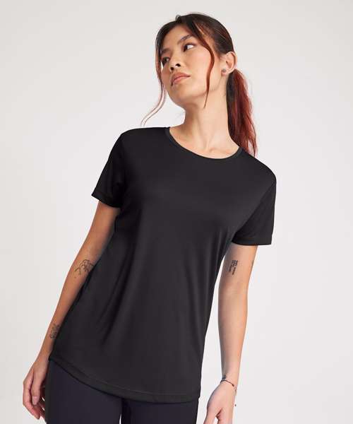 Classic crew neck T with girlie fit. Featuring high performance wicking fabric, crew neck and smooth fabric face.