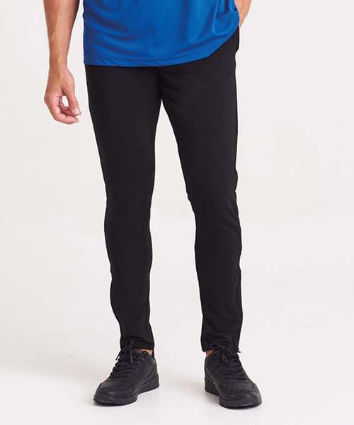 AWDis’ own Urban Cool blended fabric containing elastane that provides stretch for comfort and a great fit, Tapered fit, two side zip pockets, self-fabric back patch pockets, zip fastening at ankles, elasticated waistband with self-coloured outer drawcords, simple tear off label makes it perfect for rebranding, UPF 30+ UV protection.