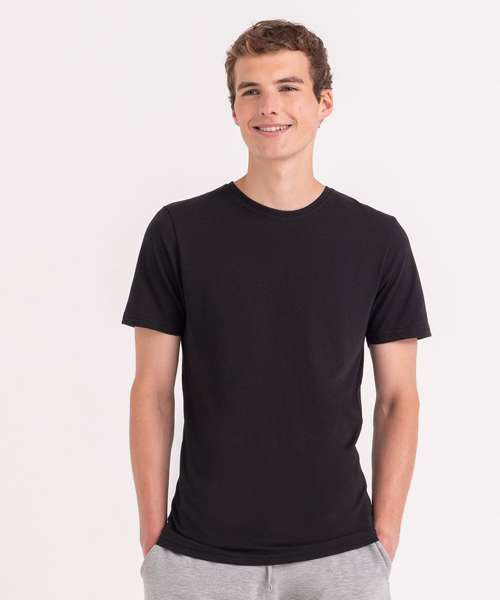 Active fit. Set-in sleeve design. Cotton polyester blended performance fabric. Self-fabric taped back neck. Twin-needle stitching detail. Self-fabric crew neck. Simple tear-out label makes it perfect for rebranding. UPF 40+ TBC. Inherent stretch fabric properties.