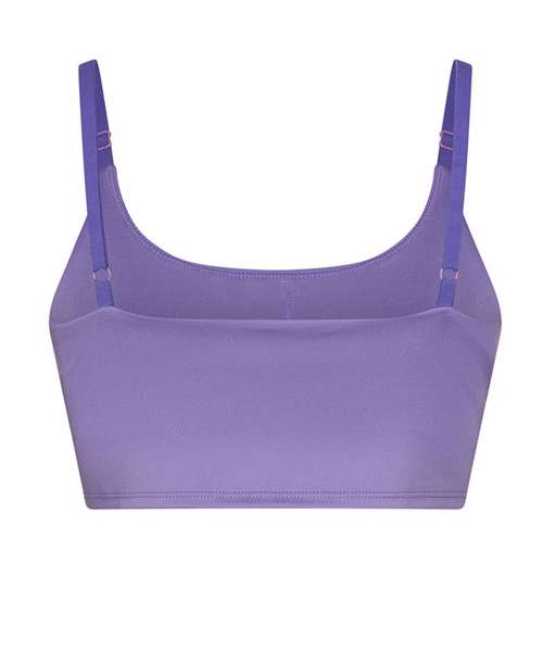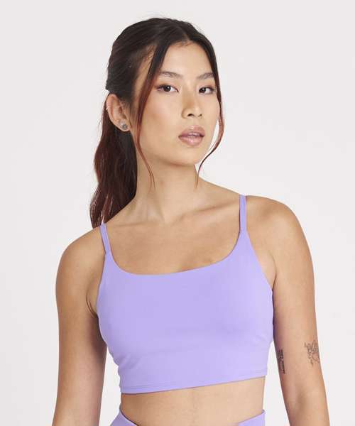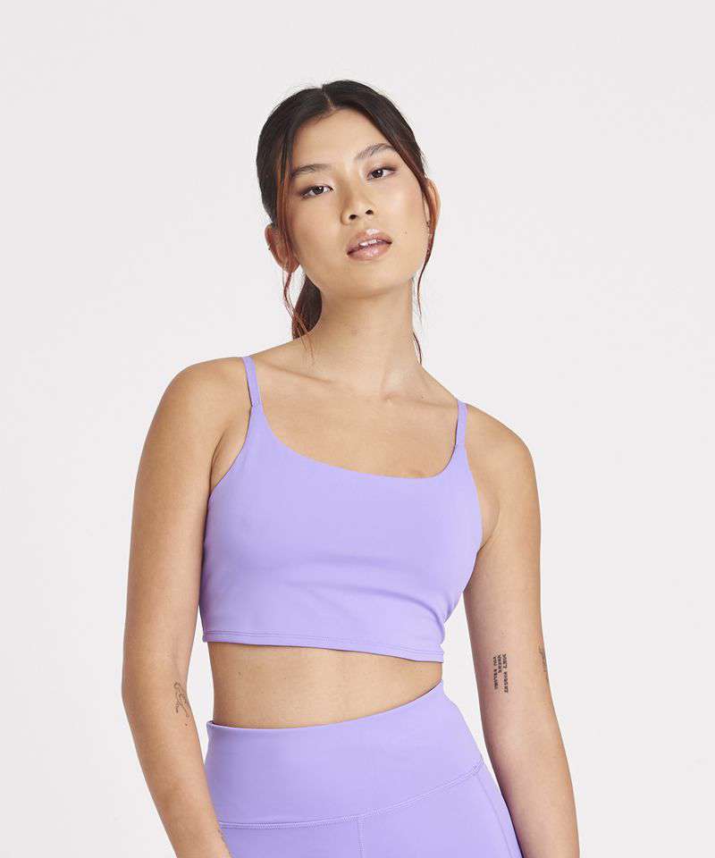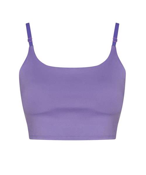 Four-way stretch for maximum movement. Removable padded bust cups. Adjustable straps. Internal support. Made with recycled polyester.
