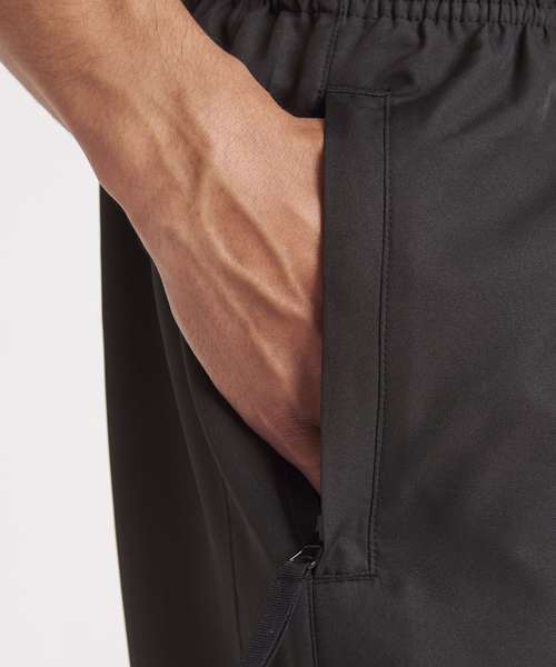 Relaxed fit. Quick-dry, wicking fabric. Ergonomic panelling. Elasticated cuffs. Zipped side pockets. Elasticated waistband. Drawcord adjustment. Tear-away label.