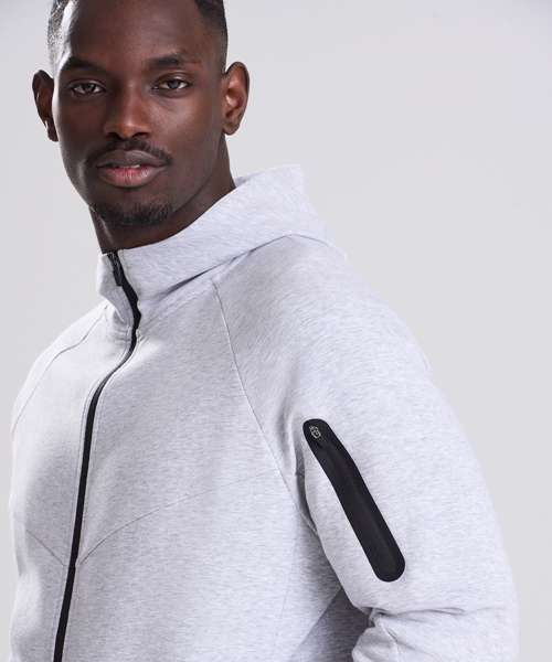 Relaxed fit. Tape-covered sleeve pocket. Interlock fabric. Binding around sleeves and hem. Reverse coil SAB zip. Ergonomic panelling. Panel pockets. Jersey-lined hood. Tear-away label.