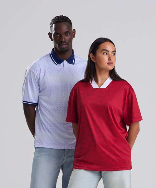 Bring back the classics with the Retro sports jersey. Designed with a relaxed fit and set-in sleeves, it features a contrast knitted collar and wicking fabric to keep you cool and comfortable. White/Navy and Red/White options include a retro-patterned print for an authentic touch, while a tear-away label allows for easy rebranding. Made with 100% recycled polyester.