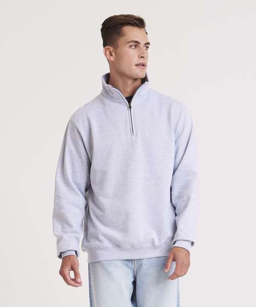¼ zip neck. Metal YKK zipper and puller. Ribbed cuffs and hem. Soft cotton faced fabric creates ideal printing surface. Simple tear out label makes it perferct for rebranding. Brushed inner fleece.