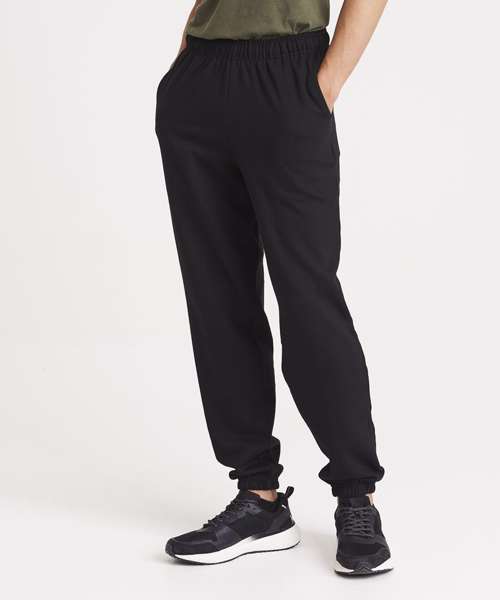 Cuffed leg opening. Elasticated waist with inner drawcord. Side pockets. Soft cotton faced fabric creates ideal printing surface. Simple tear out label makes it perfect for rebranding. Brushed inner fleece.