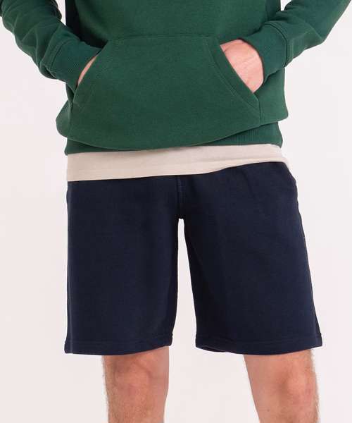 Heavyweight short. Side pockets. Single back patch pocket. Deep rib waistband with flat cream drawcord. Soft cotton faced fabric creates ideal printing surface. Simple tear out label makes it perfect for rebranding. Brushed inner fleece.
