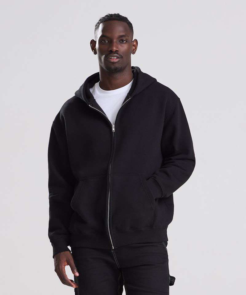 The Vision heavyweight zoodie is built for comfort and customisation. With a relaxed fit and heavyweight construction, it delivers durability and a clean, modern look. A three-panel self-fabric hood sits neatly without drawcords, while the YKK silver zip provides a premium finish. Made from 100% cotton-faced fabric for bold prints, with a brushed inner fleece for softness, it’s completed with ribbed cuffs and hem, twin-needle stitching, a locker patch and a size label only – the perfect base for branding. Made with recycled polyester.