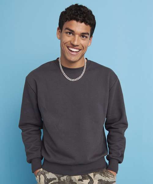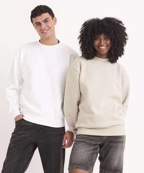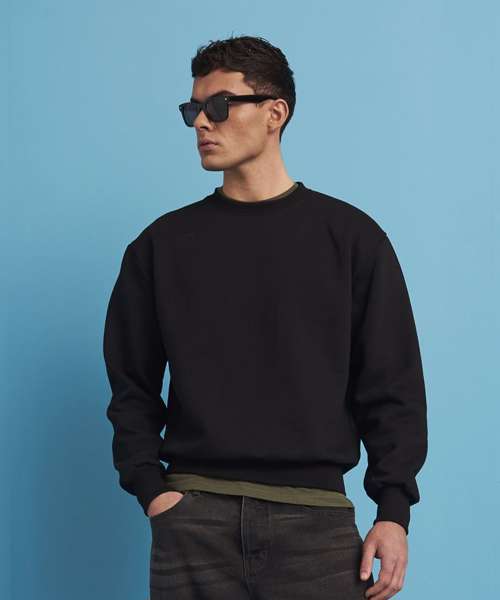 This unisex sweatshirt ensures maximum style with minimal effect. It will partner with anything and is a fuss-free style for every day. Made with a heavyweight premium cotton-rich fabric, it has an oversized, boxy fit, true to size, and features a crew neck, ribbed collar, cuffs and hem. A sweatshirt to keep you warm and comfortable.