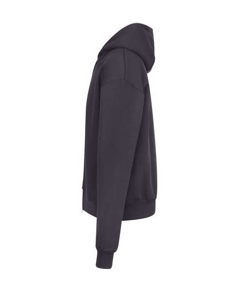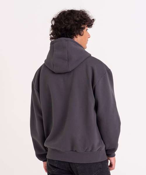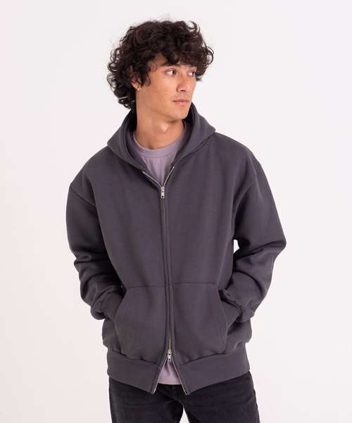 Oversized fit. Heavyweight. Three-panelled double-fabric hood. Double-end YKK zip. No drawcords. Ribbed cuffs and hem. Brushed inner fleece. Tear-away label. Contains recycled polyester.