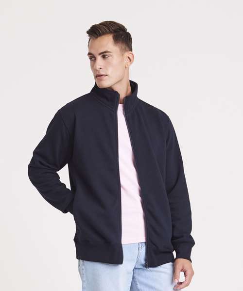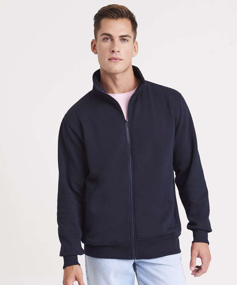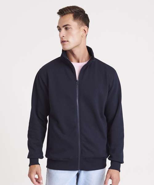 Full-zip sweatshirt. YKK plastic zip. Ribbed side panels. Ribbed cuffs and hem. Brushed inner fleece. Soft cotton-faced fabric creates the ideal printing surface. Simple tear-out label makes it perfect for rebranding.