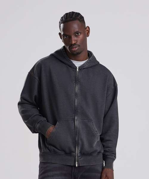 The Vintage washed zoodie combines an oversized fit with a washed finish for a laid-back, street-ready look. Featuring a full-zip, double-layer hood and French terry inner, it’s designed for everyday wear. Ribbed cuffs and hem add structure, while the kangaroo pouch pockets, locker patch and size label only make it perfect for easy rebranding. Made with cotton and recycled polyester.