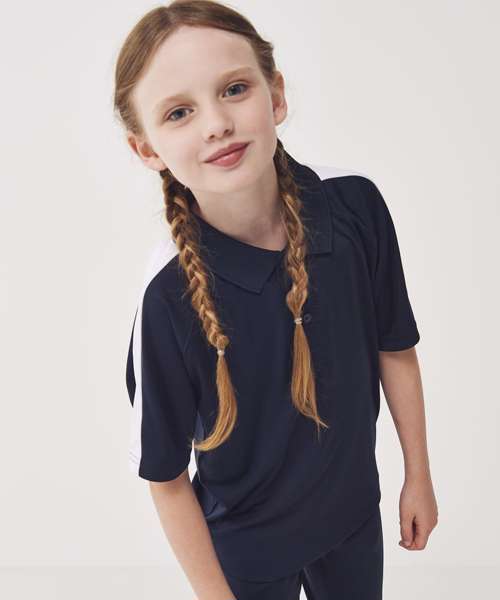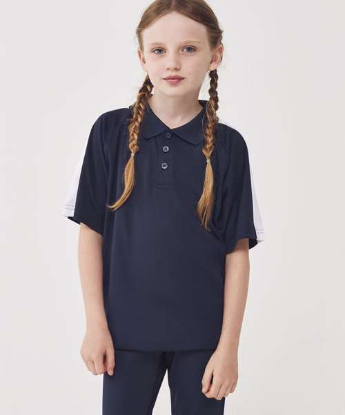 Keep kids cool and comfy in this breathable, short-sleeve team polo shirt. Perfect for sports or school, it features contrast colour panels, a flat knit collar and a three-button placket, and is made from durable 100% polyester with moisture-wicking fabric to stay dry and comfortable all day. The raglan shoulders allow room to move, with the tear-away label making rebranding easy. A great choice for play or for school activities.