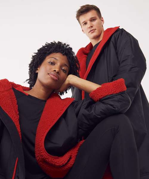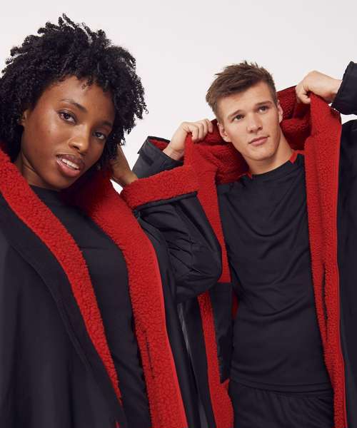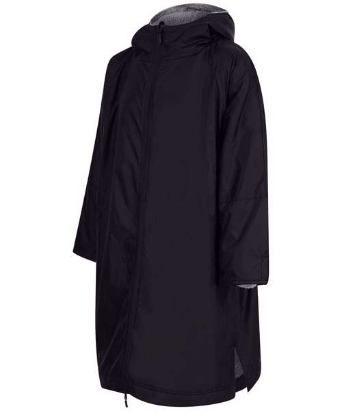 The ultimate team robe is made in a water-resistant fabric with a cosy sherpa fleece lining and three-piece hood. One size fits all, the roomy fit with double-ended full front zip allows wearers to keep warm and get changed underneath the robe. Perfect for wild swimming or wearing on team sidelines. Zipped pockets with fleece lining keep hands warm with multiple inner pockets for keeping belongings safe. Topped off with a large embroidery zip for access to directly decorate.