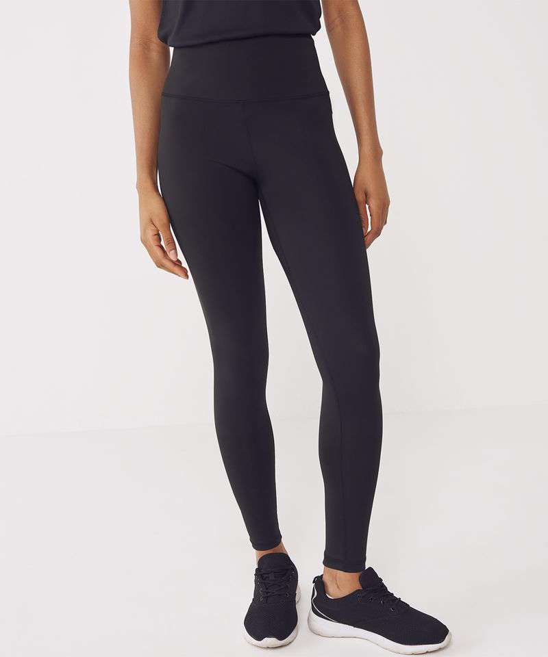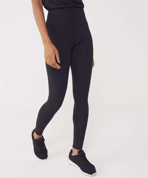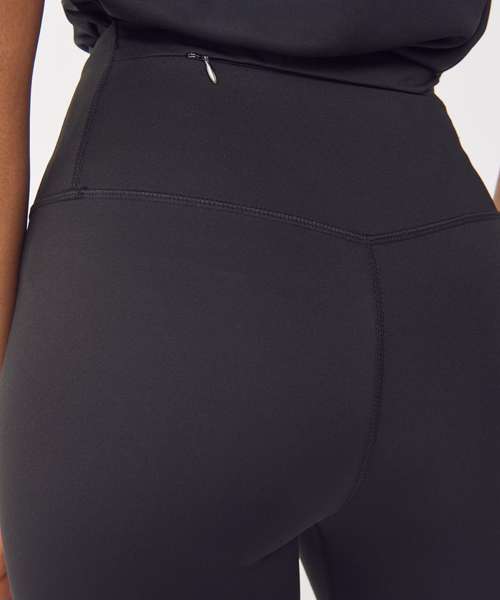 High-waisted leggings with inner drawcord. Concealed zip phone pocket on the rear waistband. No side seams for comfort. Contains 80% recycled polyester.