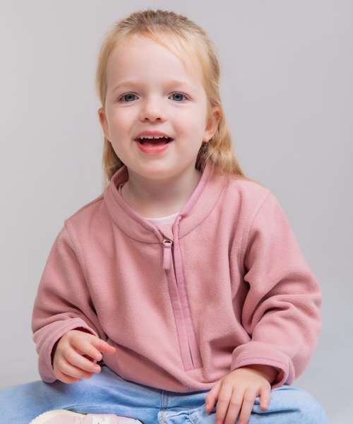 Recycled polyester, lightweight microfleece with YKK 1/2-zip styling. Unlined. Curved hem and collar, finished with stretch binding. Flatlock stitching. Features a tear-out name label on the inside side seam. Suitable for decoration.