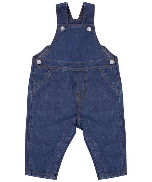 Kids dungarees with YKK poppers on straps, side seams and around inseam. Jean-style stitching on all seams and 2 rear patch pockets. Tag-free.