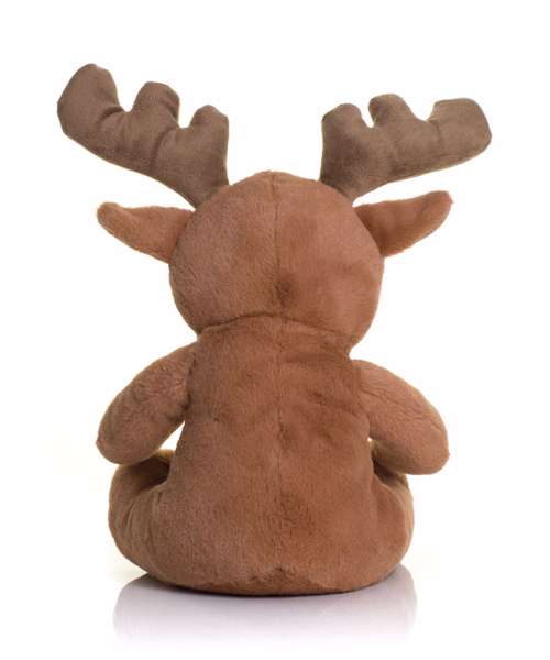 Brown coloured Reindeer with a red nose. Contrast horns. Suitable for size Medium clothing. Complies with EN71 European Toy Safety regulations. Remove all hang tags and their fasteners before giving these items to a child. Suitable for children of all ages.