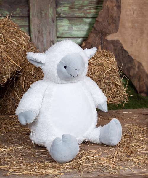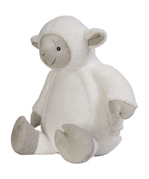 Soft plush Zippie Lamb with contrast face, hands, feet, and inner ear. Sewn eyes and mouth. White panel on tummy, perfect for decoration. Zip access on base for direct access onto the tummy for decoration. Removable inner stuffing. Can be embroidered, vinyl, and sublimation printed. Complies with EN71 European Toy Safety regulations. Remove all hang tags and their fasteners before giving these items to a child. Suitable for all ages.