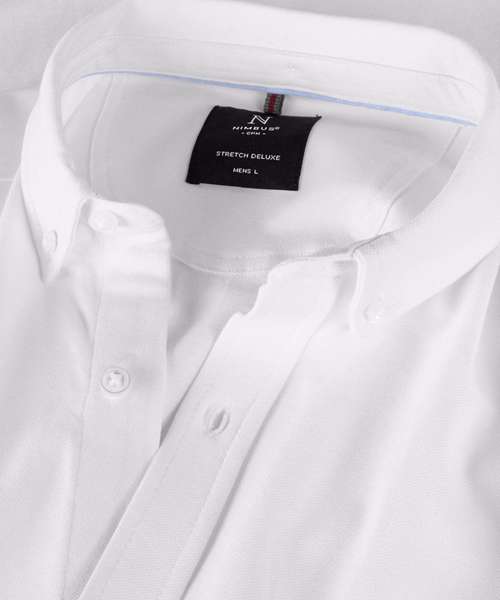Stretch deluxe fitting. Airey piqué construction. Button-down collar. Organic cotton. Organic Content Standard 100 (OCS Certified, CU1038206).