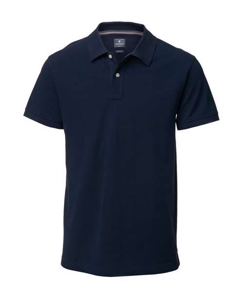 Classic two-thread piqué. Slightly stiff collar. Two-button placket. Combed organic cotton. Organic Content Standard 100 (OCS Certified, CU1038206).