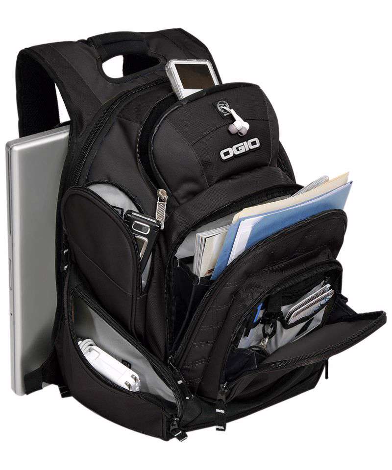 An athletic style with a huge centre compartment and plenty of well-placed pockets, keeping active executives ready for anything. Back panel side entry padded laptop sleeve. Front vertical file organiser. Large storage area. Travel essentials sleeve. Power cord and mouse storage. Four large exterior pockets. Neoprene top grab handle. Weatherproof fleece-lined audio pocket with headphone exit port. Sliding sternum strap. Deluxe organiser panel. Heavy duty reinforcements.