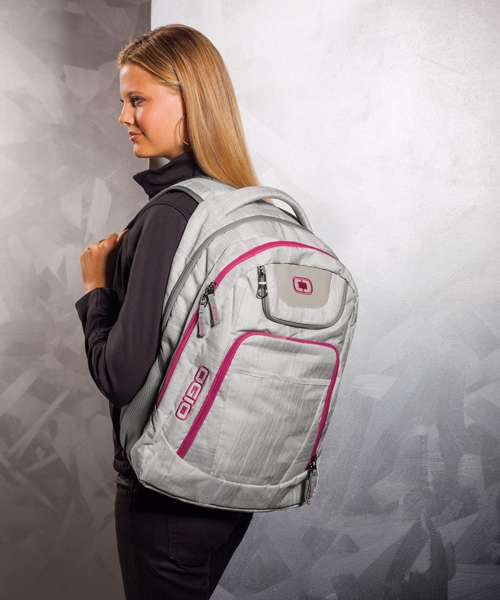 Padded interior laptop compartment fits most 17" laptops. Padded iPad™/Tablet/E-Reader sleeve. Zippered fleece-lined top valuables pocket. Large main compartment for books, binders and files. Padded back panel with air mesh for moisture wicking. Dual-sided water bottle/accessory holders. Organisation panel with zippered stash pocket. Front slip pocket. Large grab handle. Adjustable shoulder straps with sternum strap.