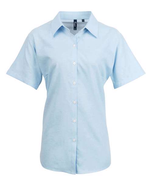 This short sleeve ladies Oxford blouse is an essential wardrobe item during the warmer months. Bust and back darts make for a flattering fit and the soft collar styling and rounded bottom hem ensure a feminine workwear blouse for women.