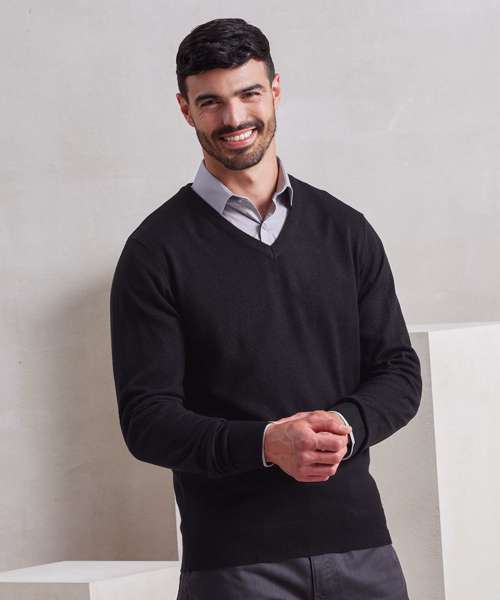 A simple easy-wearing sweater that adds layers of style to your outfit. Designed with ribbed knit set-in sleeves, hem line and v-neck for a contemporary modern look. A wardrobe essential for staff who need to maintain a smart corporate image at all times.
