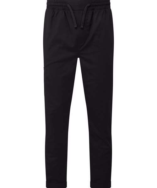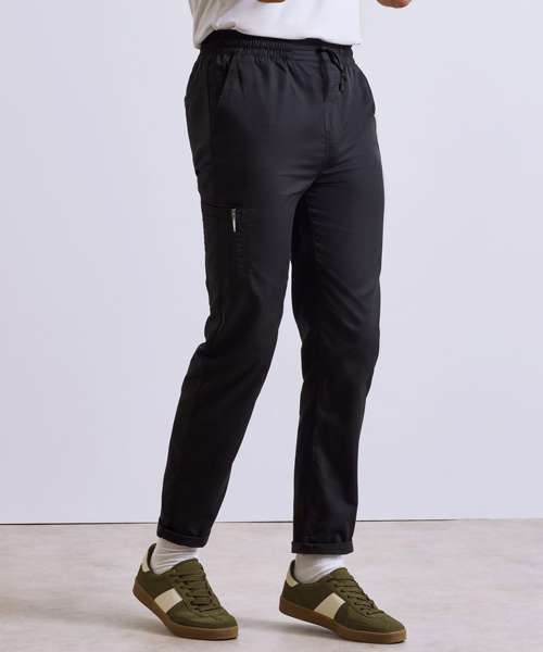 For a modern look in the kitchen, pull on these lightweight cargo trousers. Made with certified recycled polyester, the classic cargo design means these trousers boast multiple pockets with an elasticated drawcord waistband for complete comfort throughout your shift. They have a tapered fit to the lower leg with optional turn-up hem for a relaxed, on-trend look.